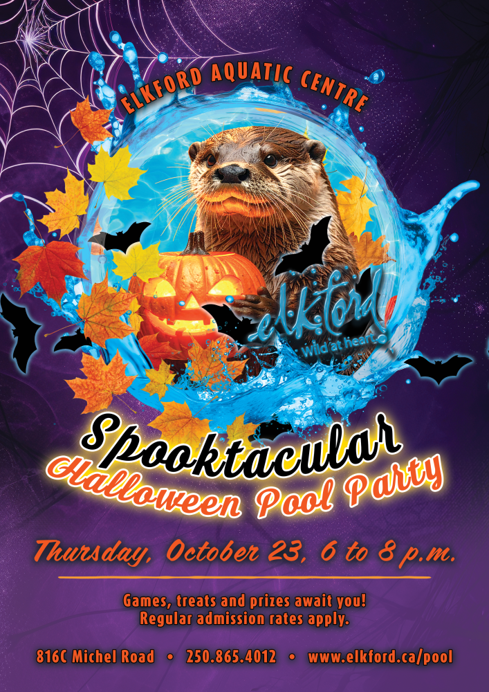 Ready to make a splash this spooky season? Join us for the Spooktacular Halloween Pool Party on Thursday, October 23 from 6 to 8 p.m. at the Elkford Aquatic Centre 👻🎃