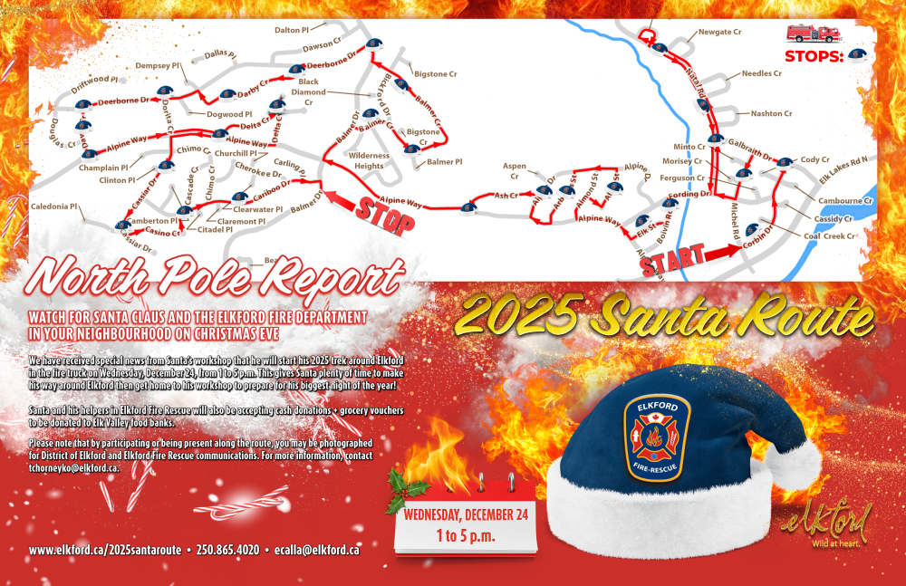 Questions about the 2025 Santa Route? Contact Elkford Fire and Emergency Services at 250.865.4020 or ecalla@elkford.ca.